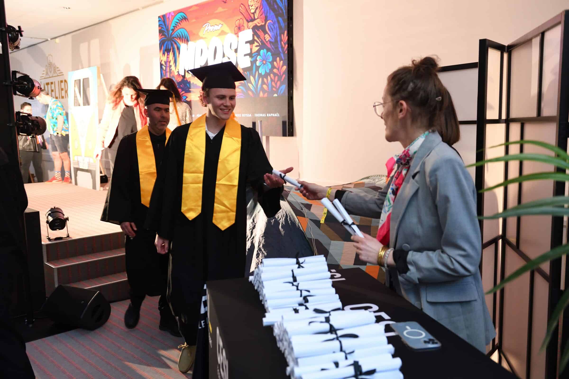 Entourés de leurs familles, amis, tuteurs en entreprise et équipes pédagogiques, les diplômés ont vécu un moment de fierté et d’émotion en traversant le podium pour recevoir leurs diplômes, vêtus de leurs toges, écharpes et mortiers. L’équipe du campus, les intervenants et les proches étaient présents pour partager ce moment unique et applaudir leurs réussites.