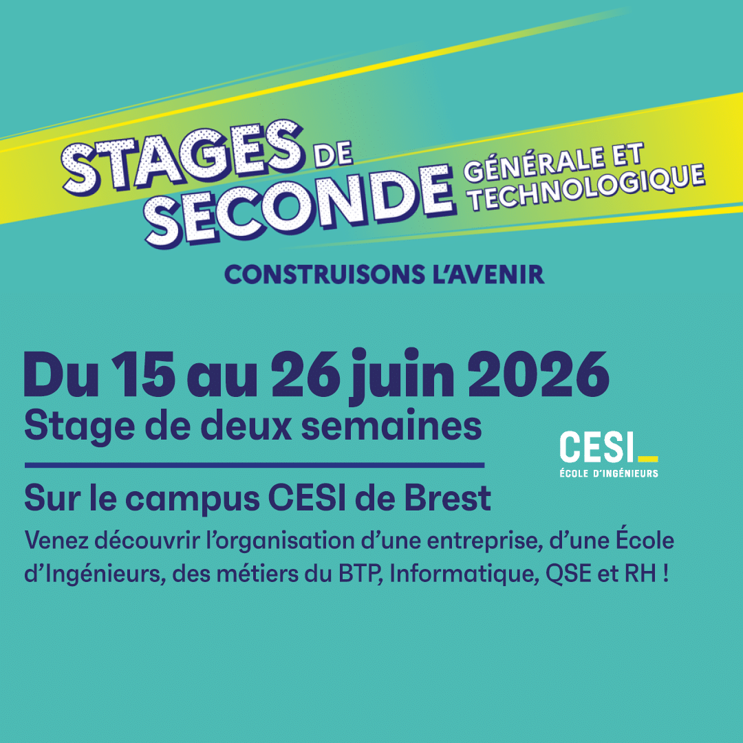 Dans ce cadre, le campus CESI de Brest vous ouvre ses portes pour vous faire découvrir le fonctionnement d’une entreprise, d’une école d’ingénieurs ainsi que les métiers du BTP, de l’informatique, de la qualité, sécurité, environnement et des ressources humaines.